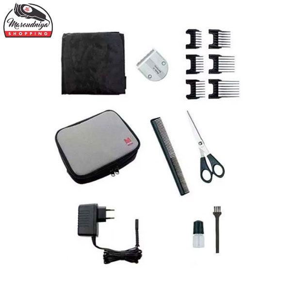 برس تمیز کننده، روغن، درپوش تیغه، 6 عدد سری، شانه، قیچی، آداپتور، کیف قابل حمل |